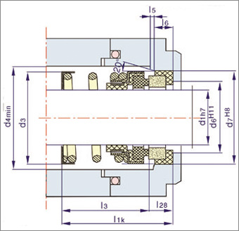 108系列采用橡膠波紋管做次級(jí)密封,并兼?zhèn)鬟f扭矩力,通過雙補(bǔ)償環(huán)背靠組對,可成為HQ208密封,常用于潛水泵。